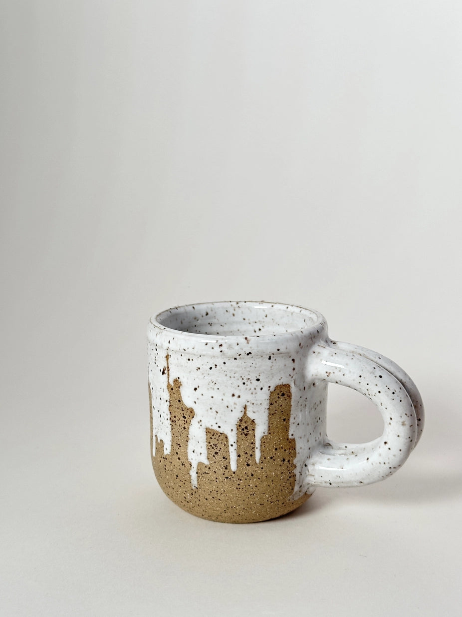 Pottery Mug speckled white glaze on a brown clay base. Mini measures roughly 2.5 inches tall by 2.5 inches in... Leer más...